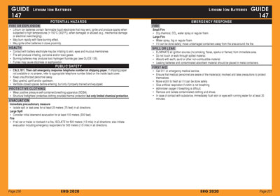 - Evacuate occupants per the Emergency Response Guidebook (ERG) Guide 111, Mixed Load/Unidentified Cargo, and Guide 147, Lithium Ion Batteries. Consider sheltering adjacent occupants in place if they are not in immediate danger.
